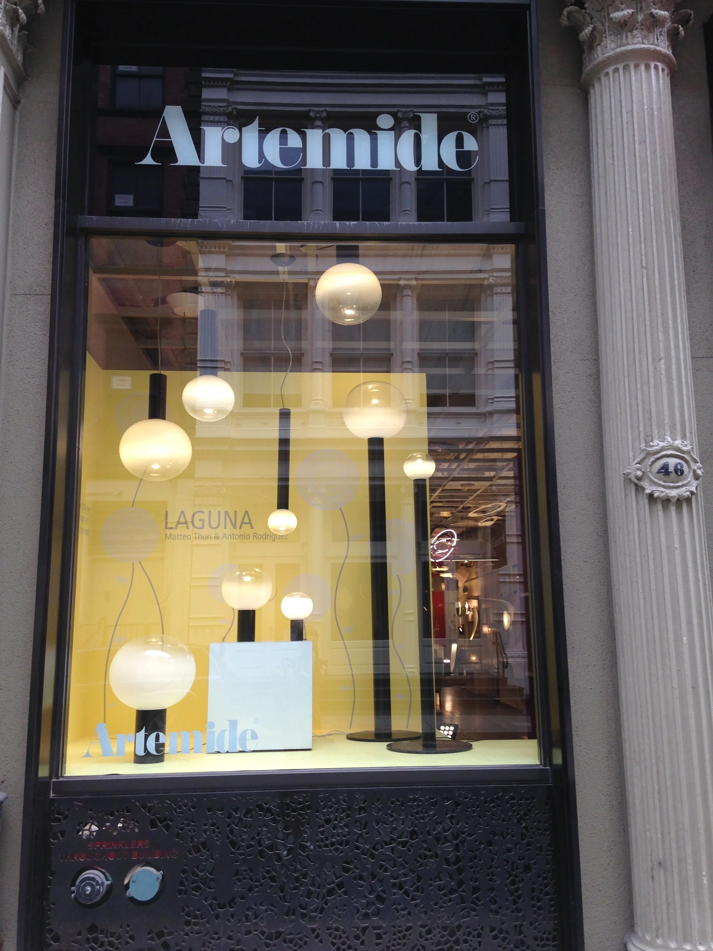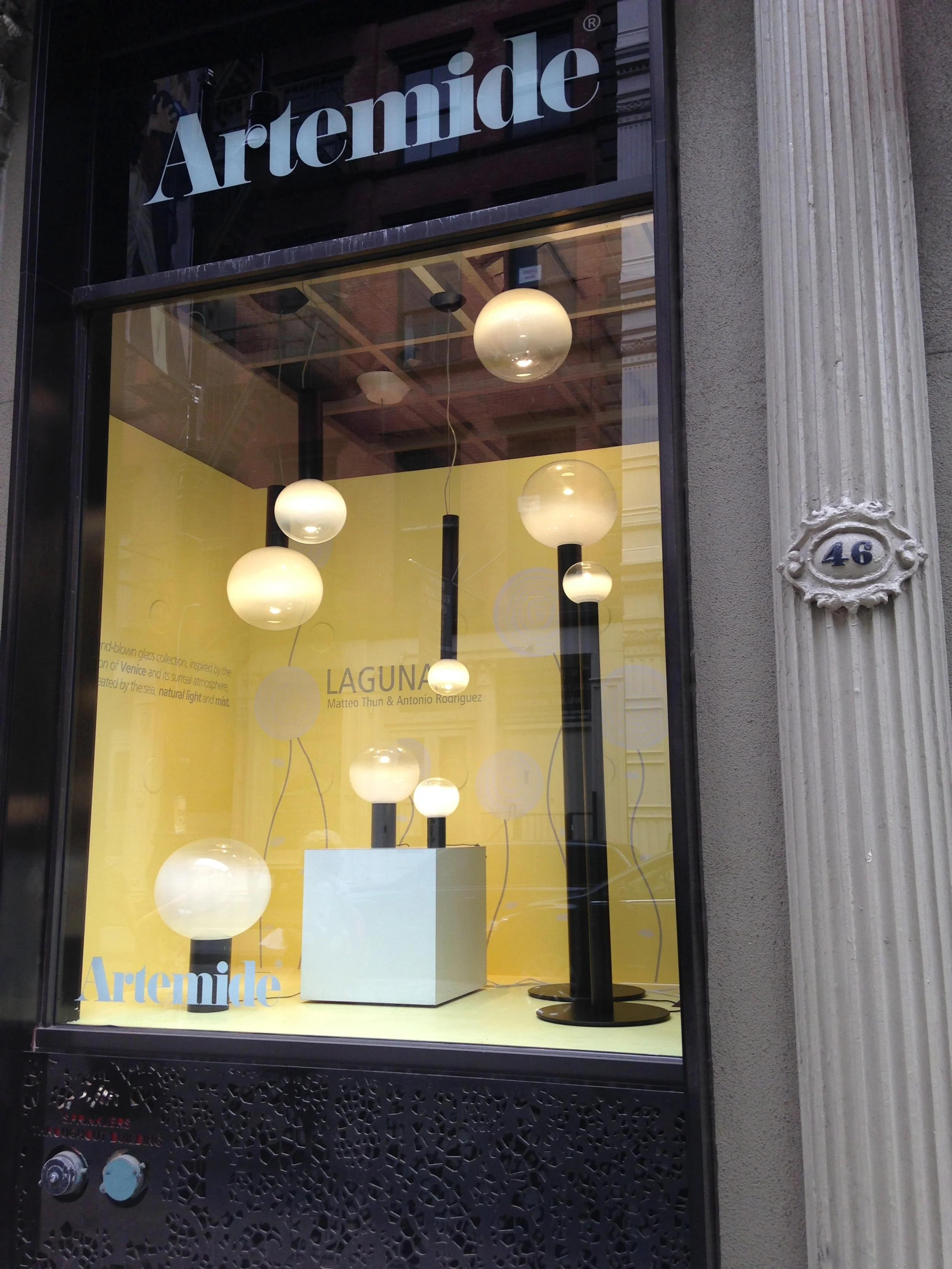 For Artemide’s SoHo showroom, Courtlyn designed the exhibition graphics for their Laguna lighting collection. She created a large-scale wall display that visually complemented the sleek, modern fixtures, transforming the storefront into a striking brand moment for passersby. The installation blended storytelling with spatial design, highlighting Artemide’s innovative approach to lighting while drawing customers into the retail space.